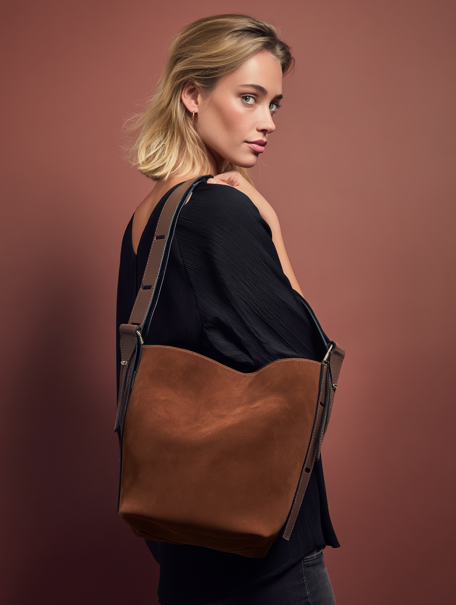 Serena Suede & Leather Bucket Shoulder Bag, by Clemés