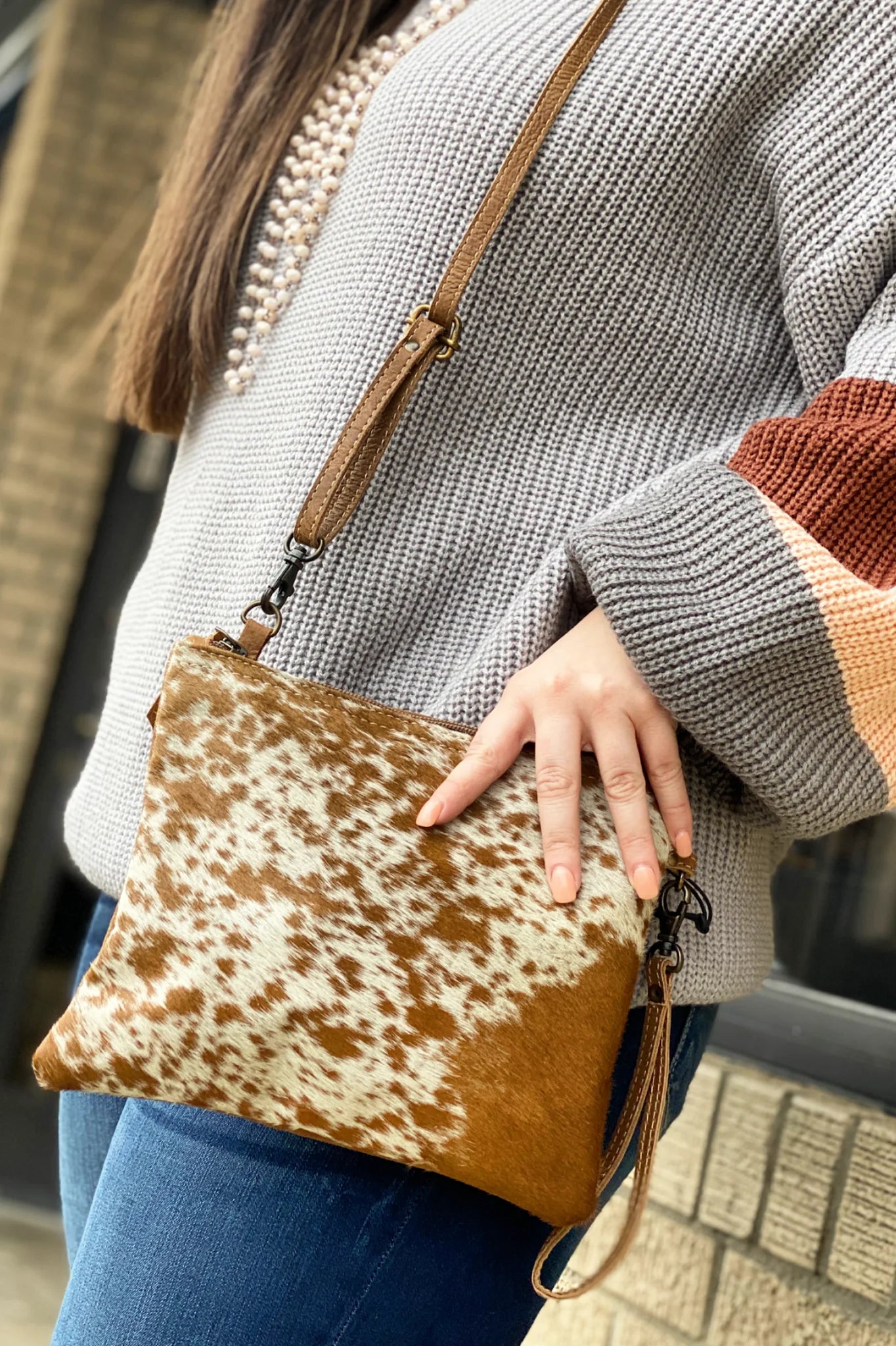 Natural Cowhide Double-Sided Crossbody Bag, Large (26 x 23 cm)