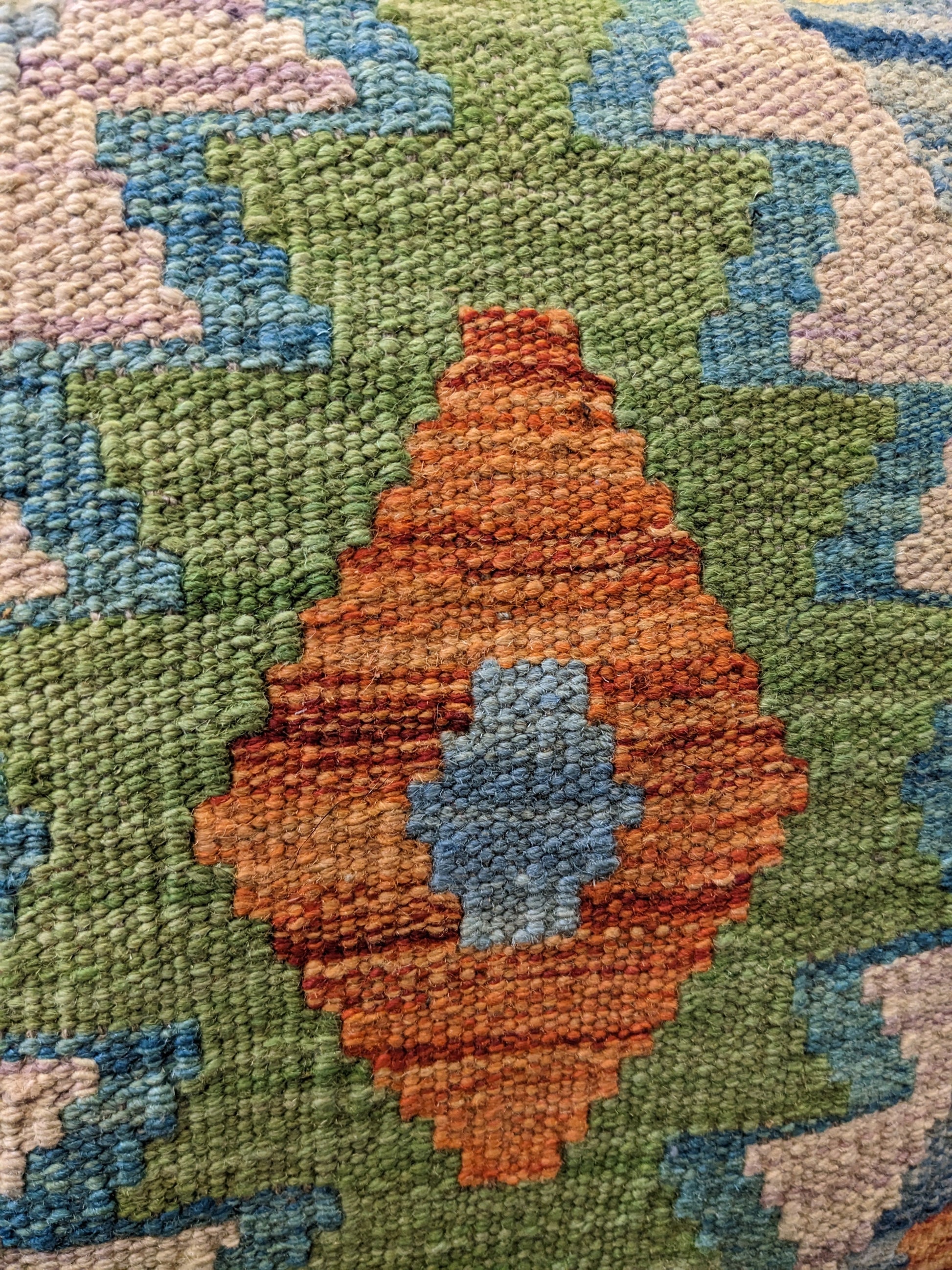 Each Afghanistan Kilim Cushion Cover is a one of a kind creation made from vintage tribal kilims. Bold geometric patterns and earthy tones bring a touch of tradition and timeless charm to any setting. Crafted from pure wool with a sturdy cotton backing, they blend rustic texture with rich cultural history. Perfect for adding warmth character and story to your home.