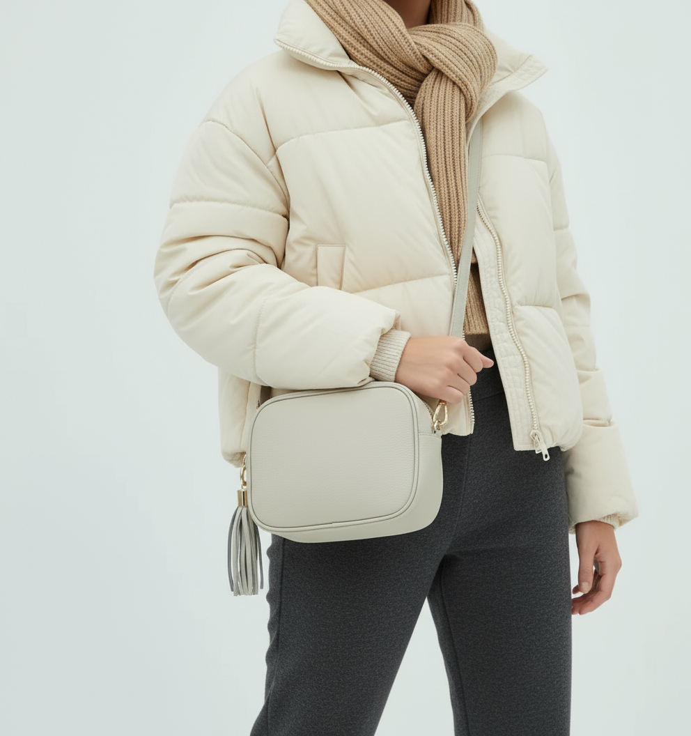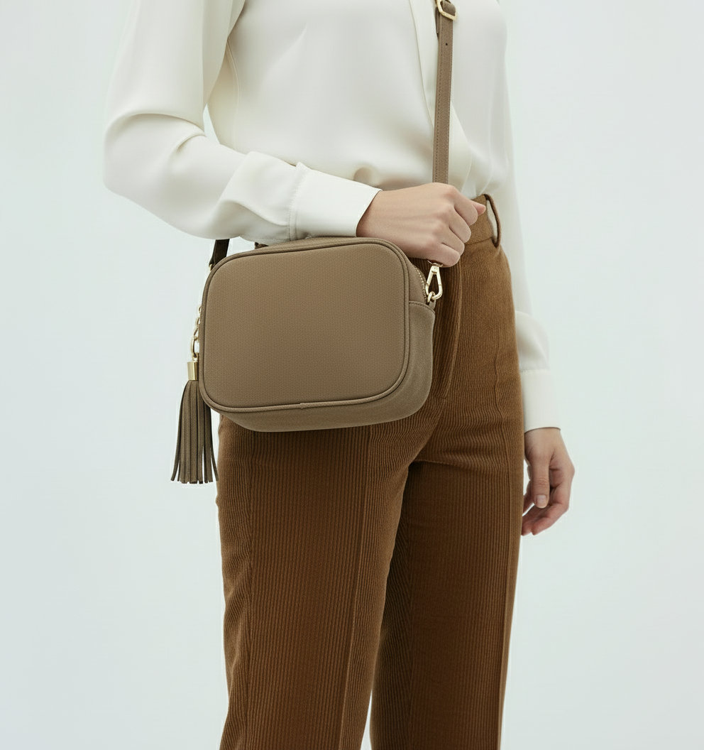 A timeless crossbody designed in supple genuine Italian leather, Éloise brings understated elegance to everyday dressing. Compact yet practical, it features a classic camera-bag silhouette, finished with a tassel zip and gold-tone detailing. Inside, a soft fabric lining and card slot help keep essentials organised. Measuring 20 × 15 × 8 cm (7.9″ × 5.9″ × 3.1″), it’s perfectly sized for day-to-night wear.