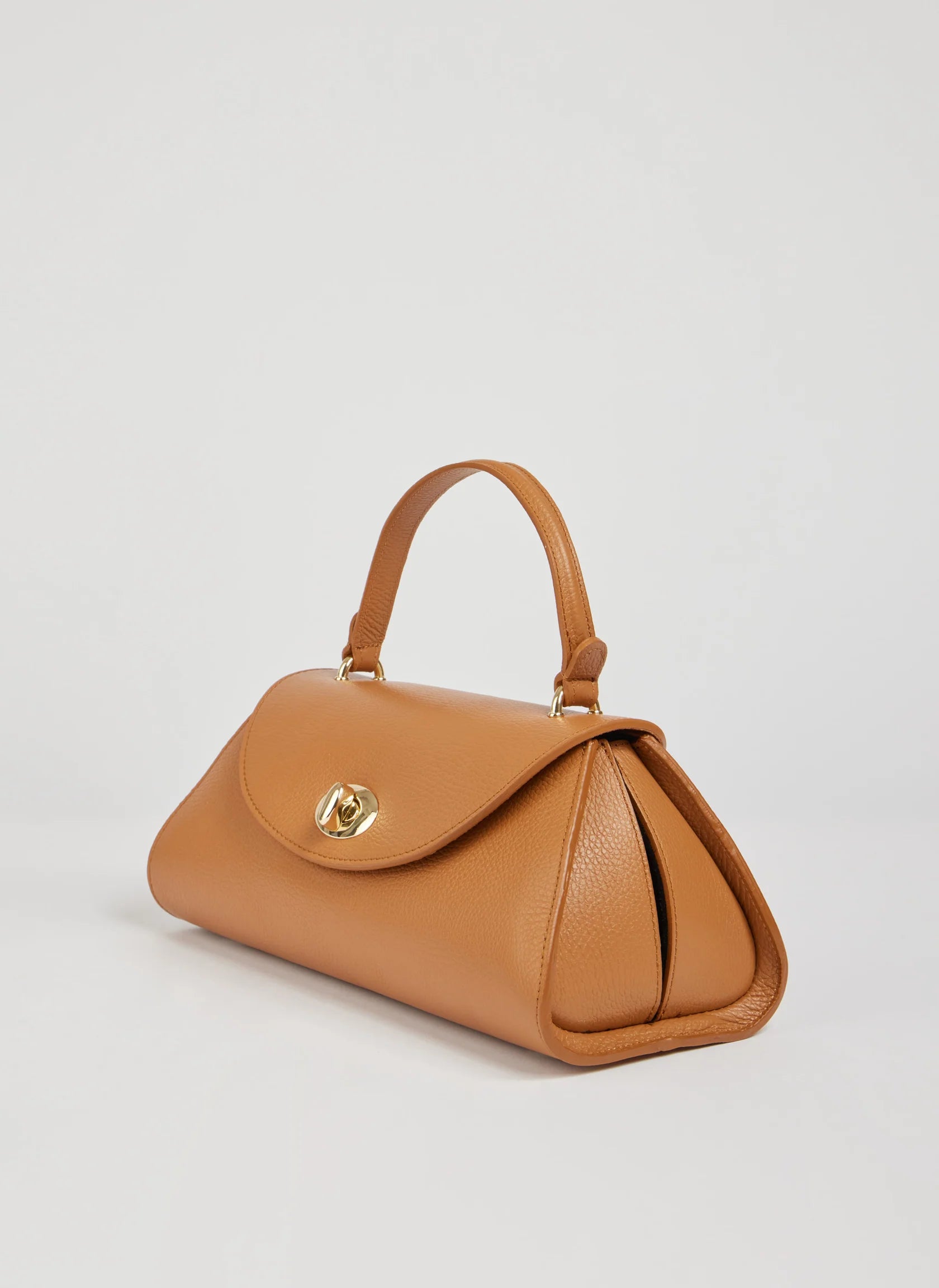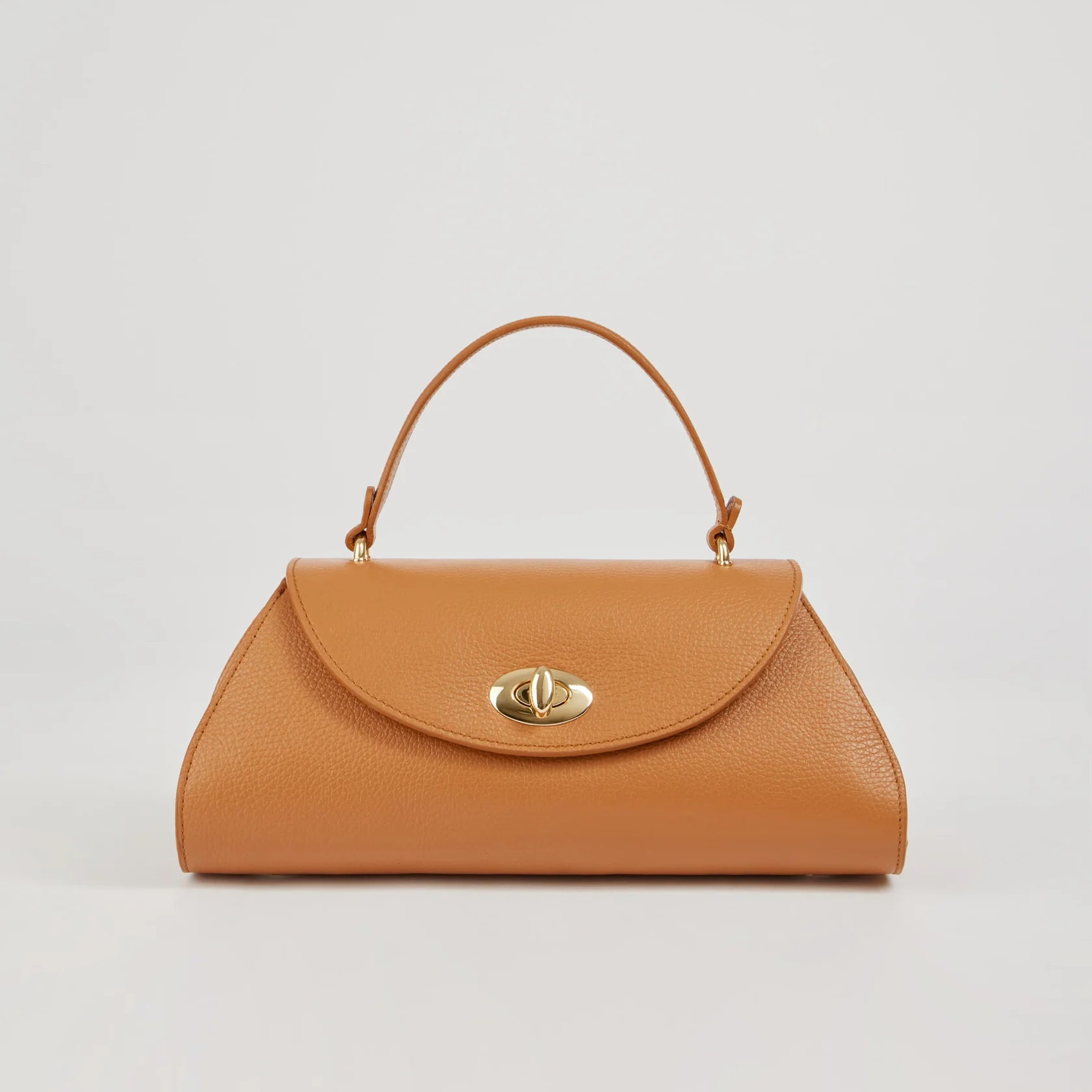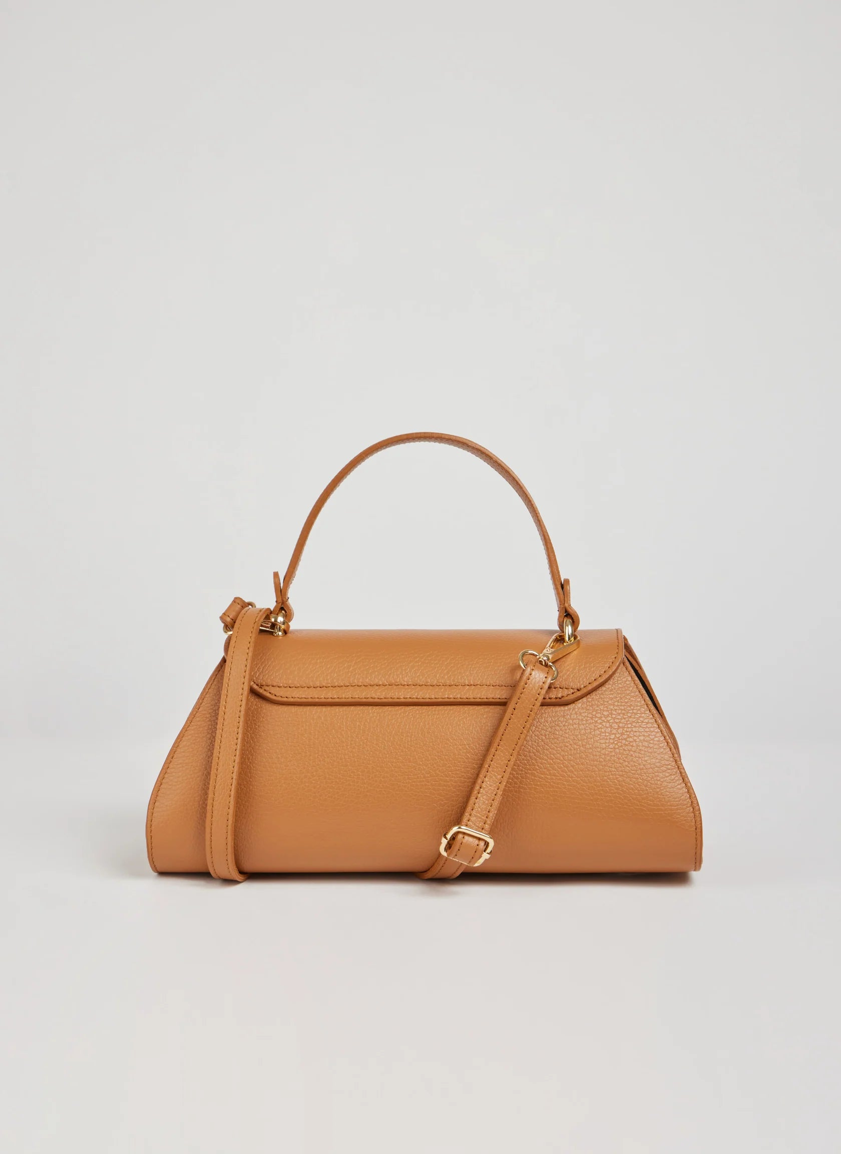 The Aveline by Clemés blends sculptural elegance with everyday ease. Handcrafted in Italy from soft genuine leather, its curved flap design and structured base create a silhouette that feels both classic and contemporary. A polished gold-tone turn-lock keeps everything secure, while the versatile straps let you carry it in hand or wear it crossbody. Compact yet roomy, it’s a refined companion from morning coffee to evening dinner.