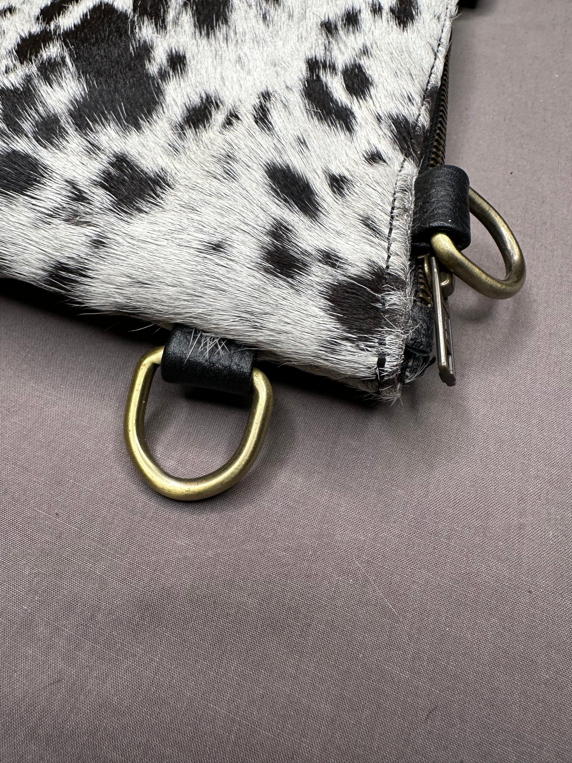 - Crafted from exotic natural hair-on cowhides with coordinating leather trim, each bag is an original one-of-a-kind item expressing your own aesthetic independence and identity.