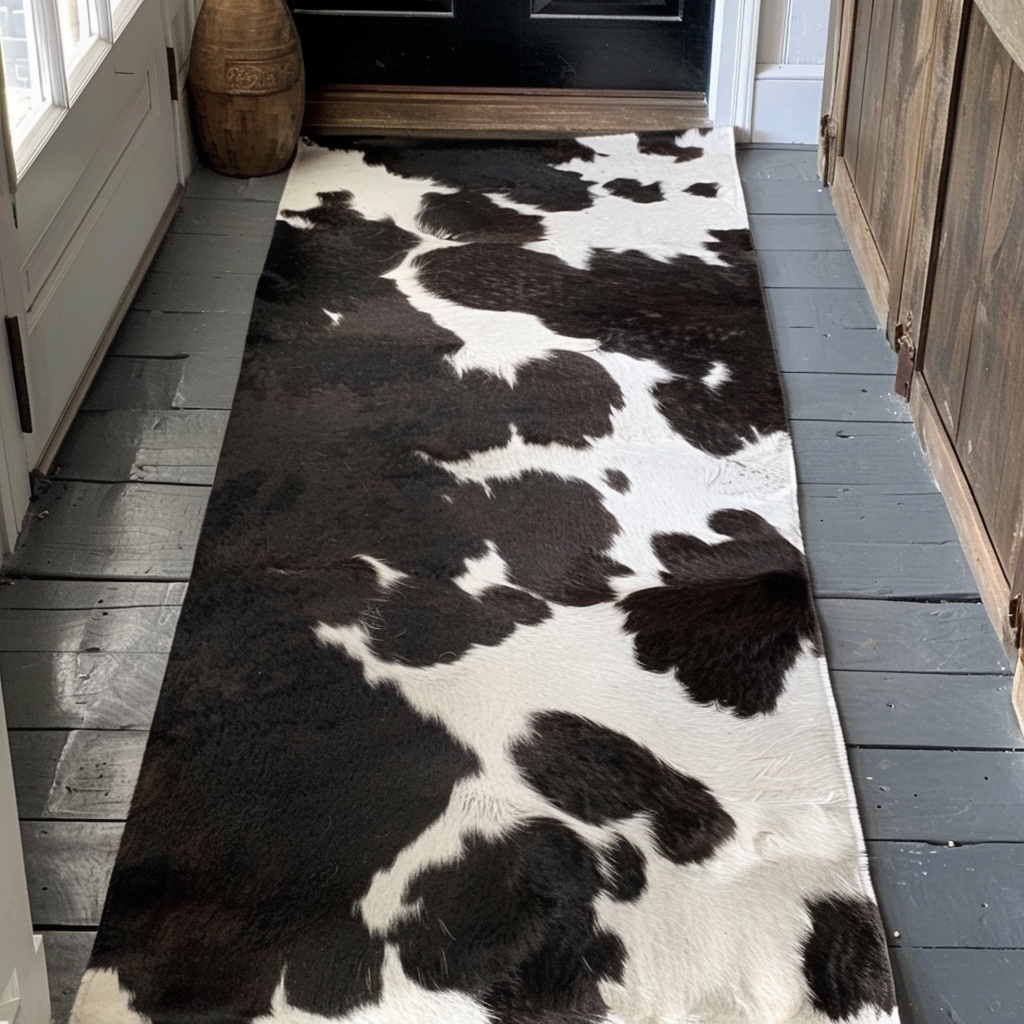 Natural Cowhide Rug/Runner, Black & Ivory, W50 x L150 cm