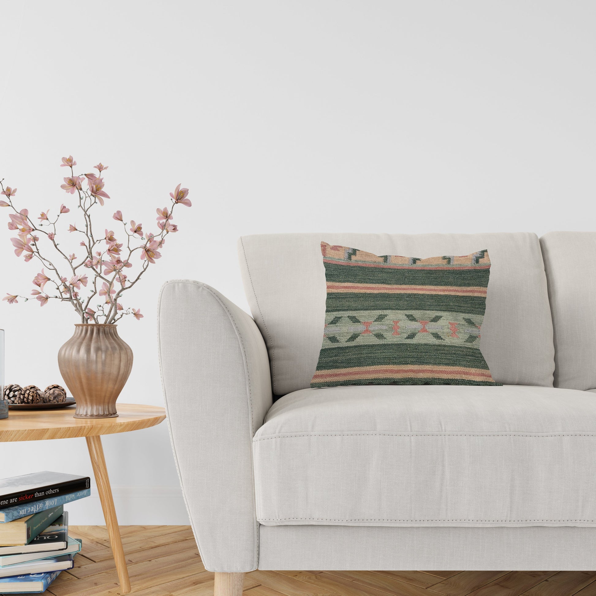 Complement your decor with our Luxurest Cushion Cover! Handwoven in Pakistan from a vintage Turkish kilim, this eye-catching cushion features luscious wool and a vibrant traditional pattern in green that'll add life to any room. At 58cm x 40 cm, it's a great addition to living rooms, bedrooms, and kid's rooms. Plus, it's made with top-grade materials and expertly crafted for a luxe look.