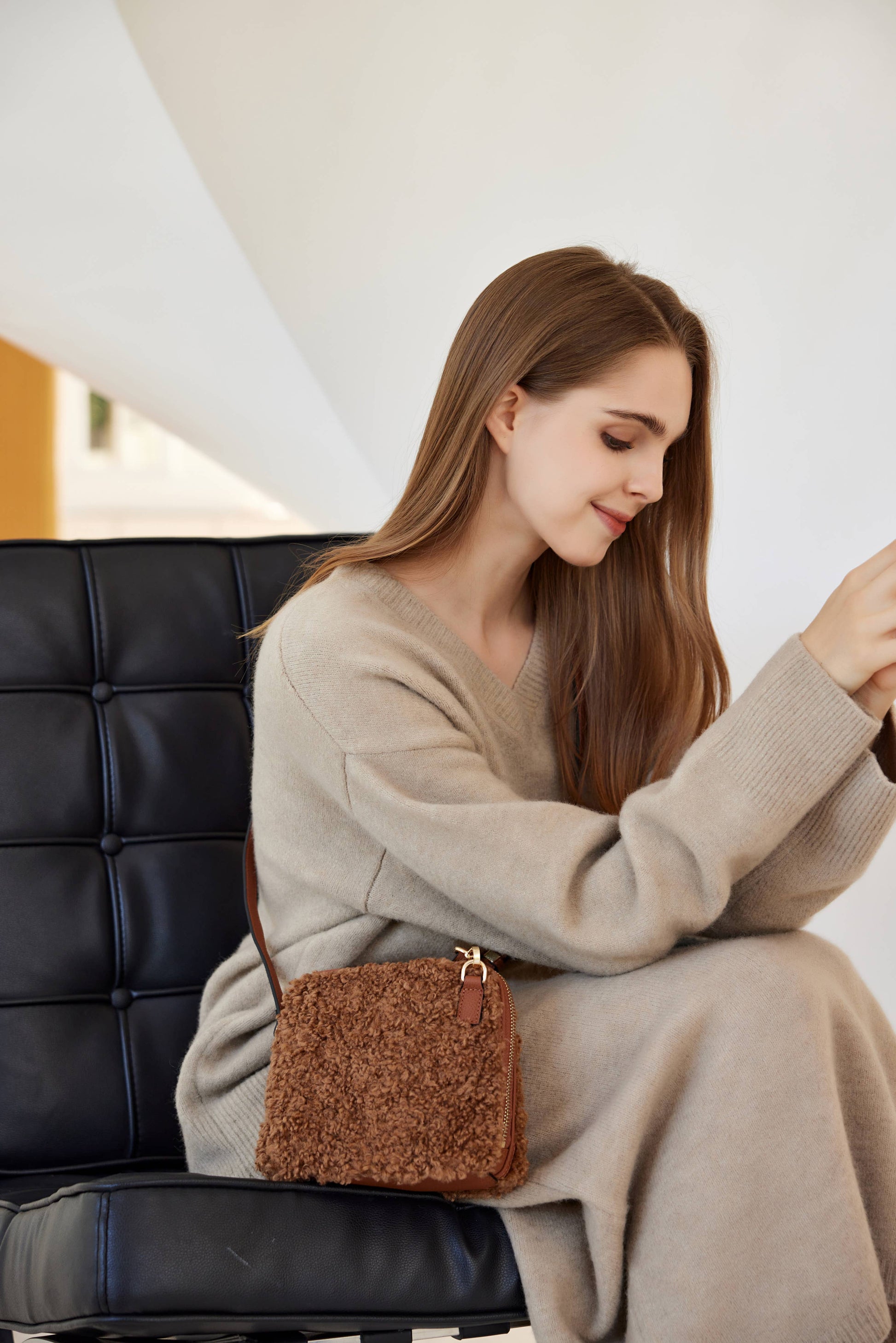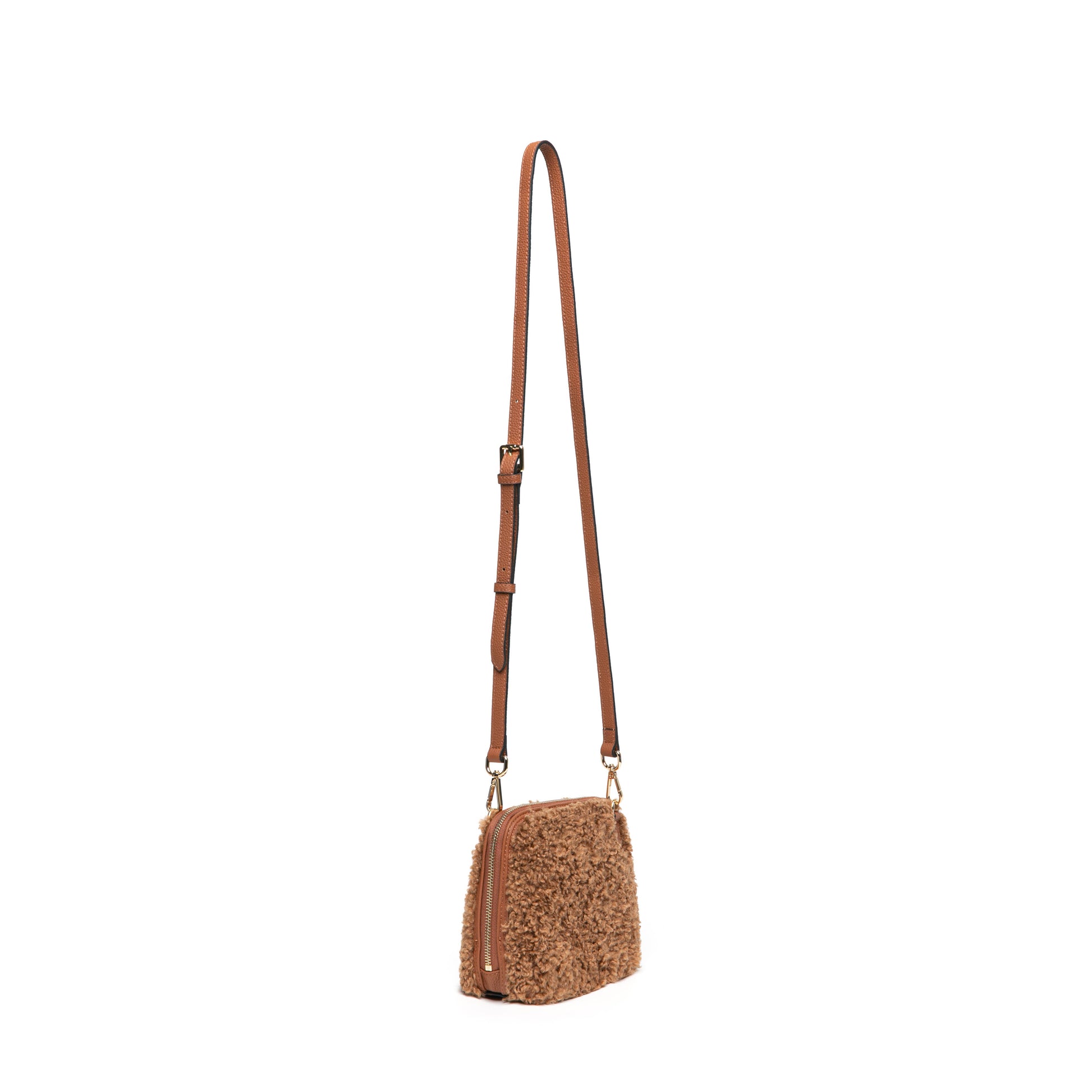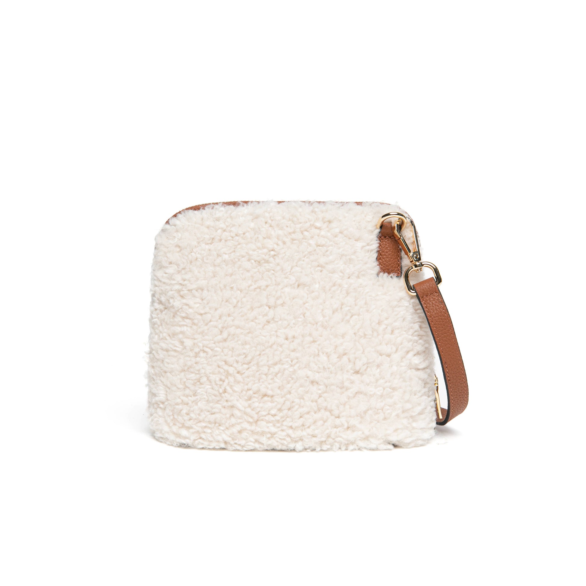 Meet your new cold-weather favourite: a compact faux shearling crossbody with just enough structure to feel polished, and just enough softness to feel indulgent. Finished with gold-tone hardware and trimmed in genuine leather, it sits neatly against the body and keeps daily essentials organised in two compartments — ideal for winter walks, city errands, and cosy evenings out.