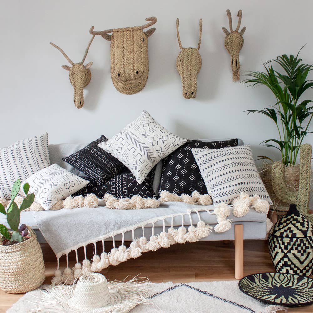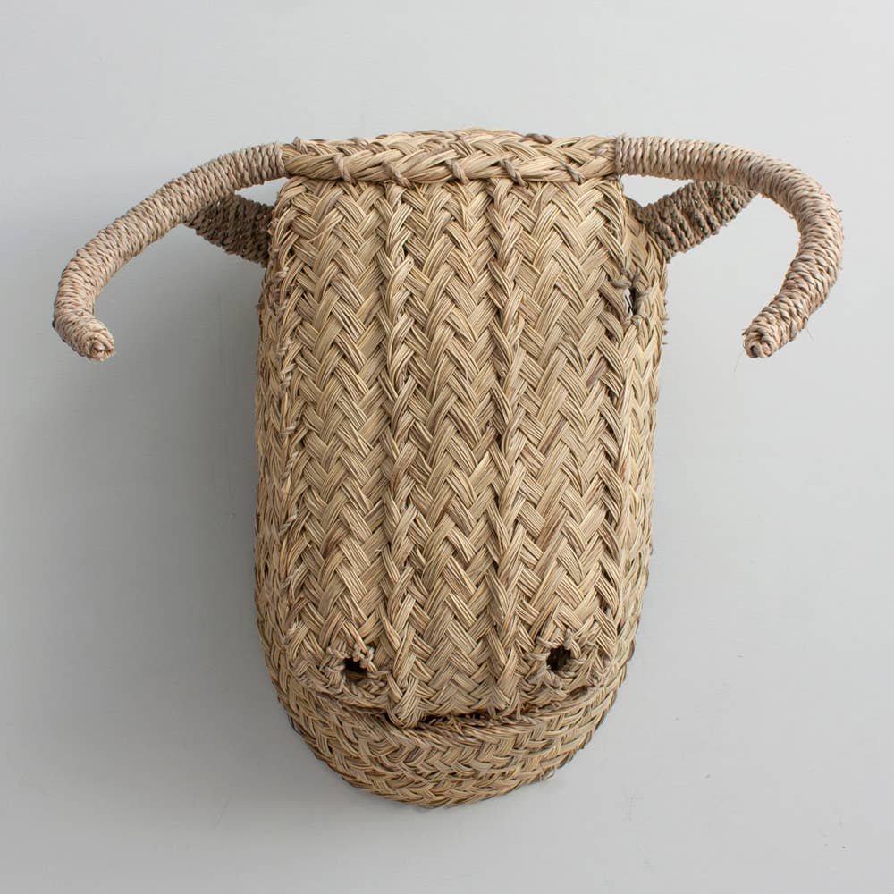 Bring a touch of rustic charm into your home with our handcrafted Buffalo Woven Animal Head in large size. Lovingly handmade by skilled artisans in Morocco, this unique piece is woven from natural halfah grass, blending bohemian spirit with whimsical flair. Ideal for creating a fun feature wall or as a stand-alone decoration, its playful appeal makes it especially delightful in nurseries or children's bedrooms. Perfectly suited to both contemporary and traditional interiors, this large decorative buffalo head measures approximately H40cm x W26cm x D25cm (15.7" x 10.2" x 9.8").